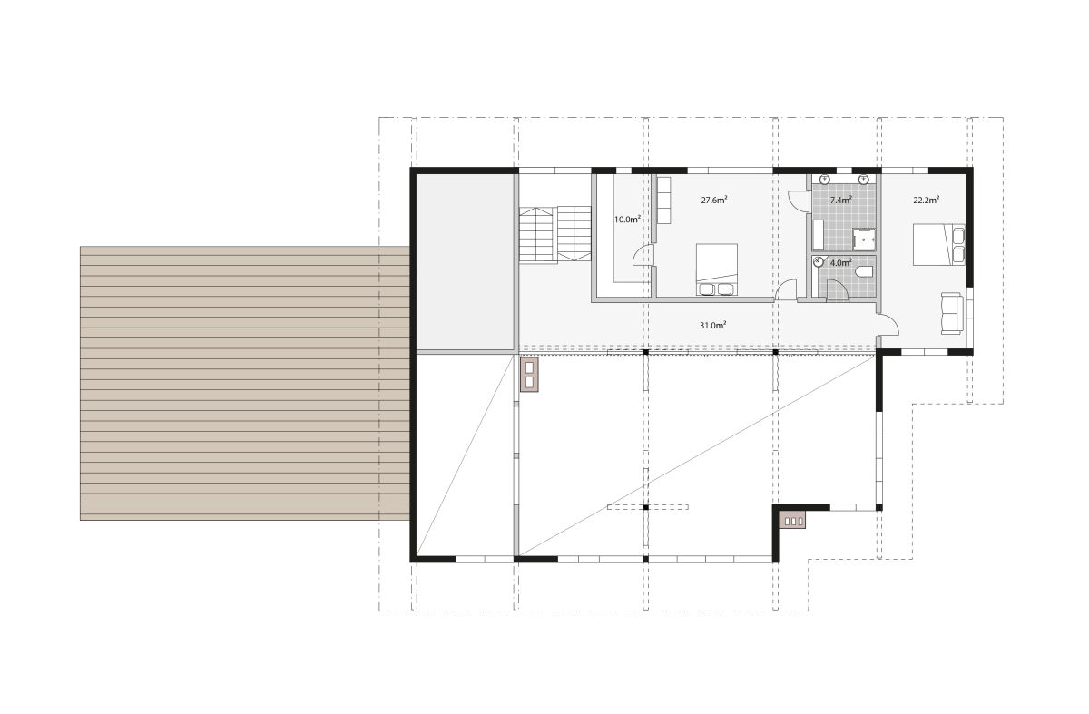 The luxurious lounge and dining areas on the first floor, the roomy kitchen with its bar as well as separate TV room and studies offer activities to even the most demanding taste. On the upper floor of the building there are two first-class main bedrooms. A sauna department with lounge and fitness rooms is on the basement. In addition, the basement includes a second kitchen, living room and four bedrooms, which can be used as a separate apartment when needed. On top of the garages there is also a separate tranquil adjacent apartment.