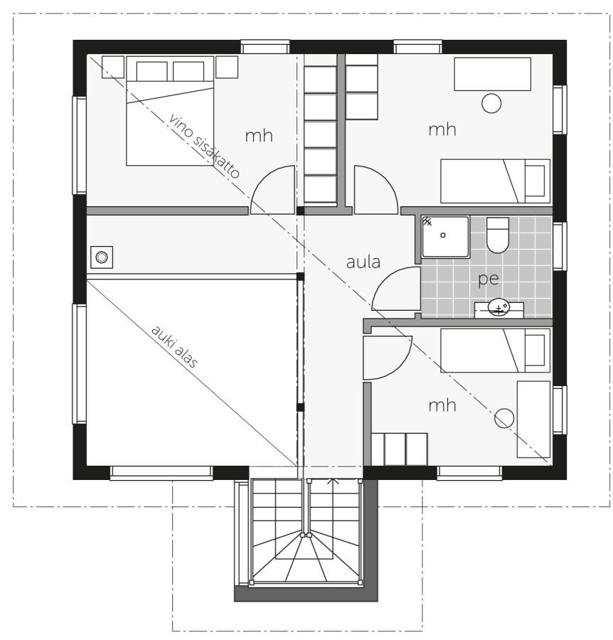 Kontio Niittyrinne creates a fresh, modern look with its cubic shape and mono-pitch roof, which combine well with the spectacular stairwell.