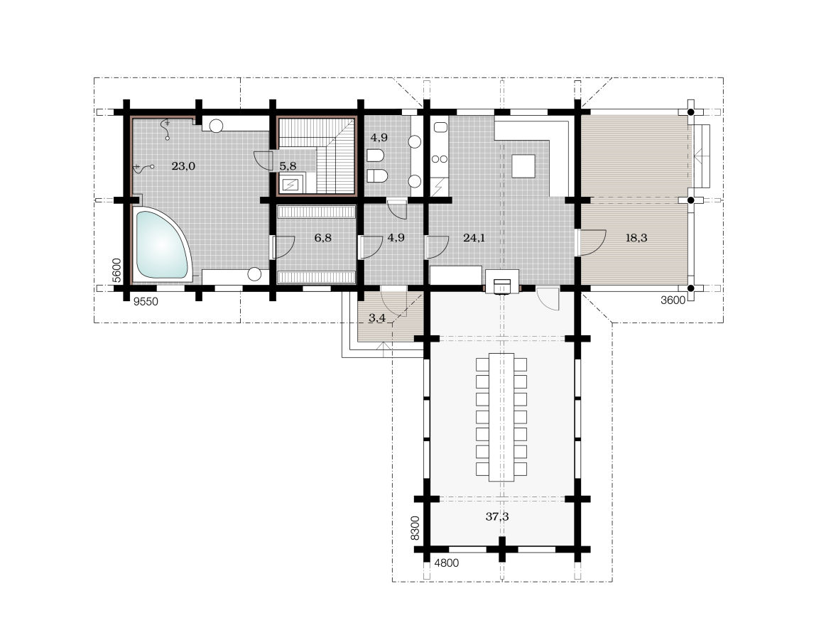 Kontio Zea is an impressive spa building with large spaces that are made for entertaining.