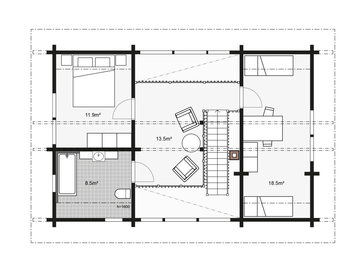 The Kontio Apertus collection is a modern interpretation of the classic Central European building style. The steep ridged roof and unique architectural details will inspire you for years to come.