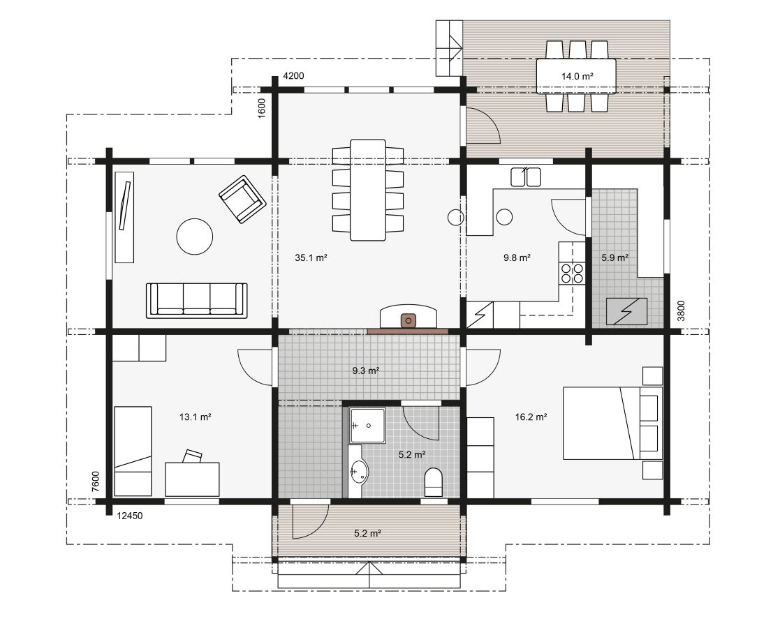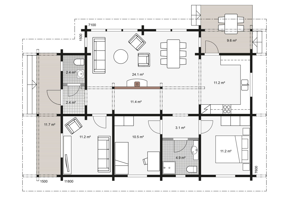 Delphinium - Wood House Delphinium Ago 75, Delphinium Ago 94, Delphinium Leo 104 and Delphinium Leo 92 -models, 1 floor log house