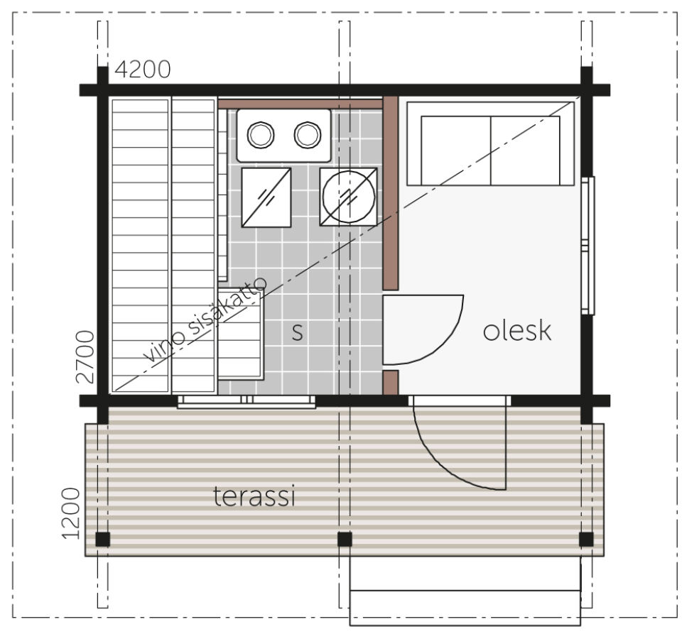 Valmiiksi työstetty 95 x 170 mm höylähirsi, eriste alimman hirren ja perustuksen väliin, tiivisteet hirsien väliin, vaarnat hirsien kiinnittämiseen, ovien ja ikkunoiden kiinnittämiseen tarvittavat karapuut, asennusvalmiit naulalevyristikot/-kehät/kattopalkit, huopakatteen aluslaudoitus, räystään otsalaudat, päätyräystäiden runkorakenteet, lattiakoolaukset, lattialaudat, höyrynsulku lattiaan, painekyllästetty koolaus ja lattialauta kuistille ja terassille, eristetyt ulko-ovet, 2-lasiset puuikkunat heloineen ja tiivisteineen, tuuletusikkunoihin sääskiverkot, ovi- ja ikkunavuorilaudat, vuorilautojen koristeet sisä- ja ulkopuolelle, kuistien kaiteet, kuistien pilarit ja palkit, tarvittavat pilarien säätöjalat, päätyjen rungot, päätyjen ulkopuolinen verhous, kaulusten ulkopuolinen verhous, väliseinärunkotolpat, väliseinän ala- ja yläjuoksut, hirsipaneelit väliseiniin, höyrysulku kattoon, sisäkattopaneelit, väliovet lakattuja puupeiliovia, lasiaukollinen saunan ovi, muotoon höylätyt jalkalistat, muotoon höylätyt kattolistat, saunan lauteet kuusilautaa, alumiinipaperi saunan sisäkattoon, saunan paneelit.