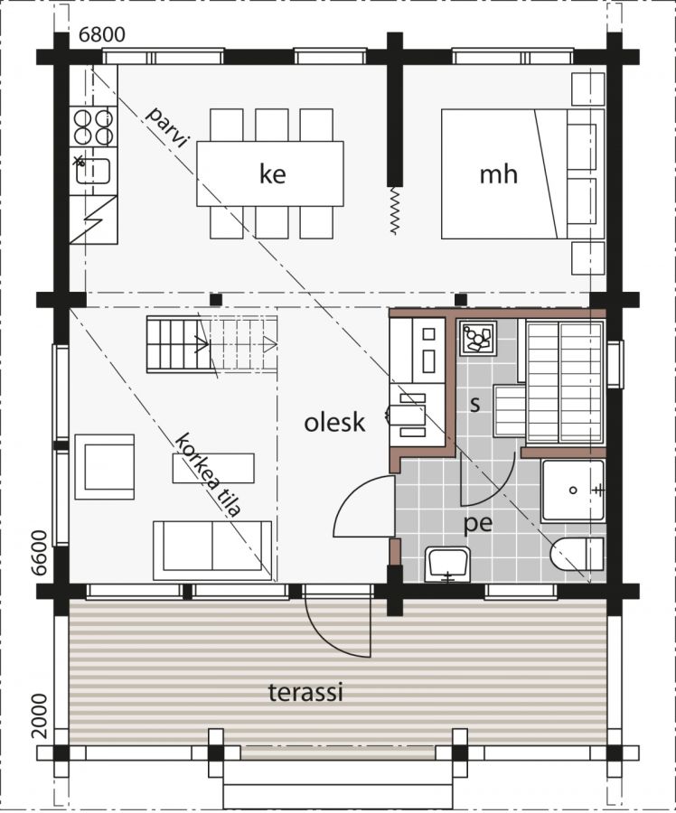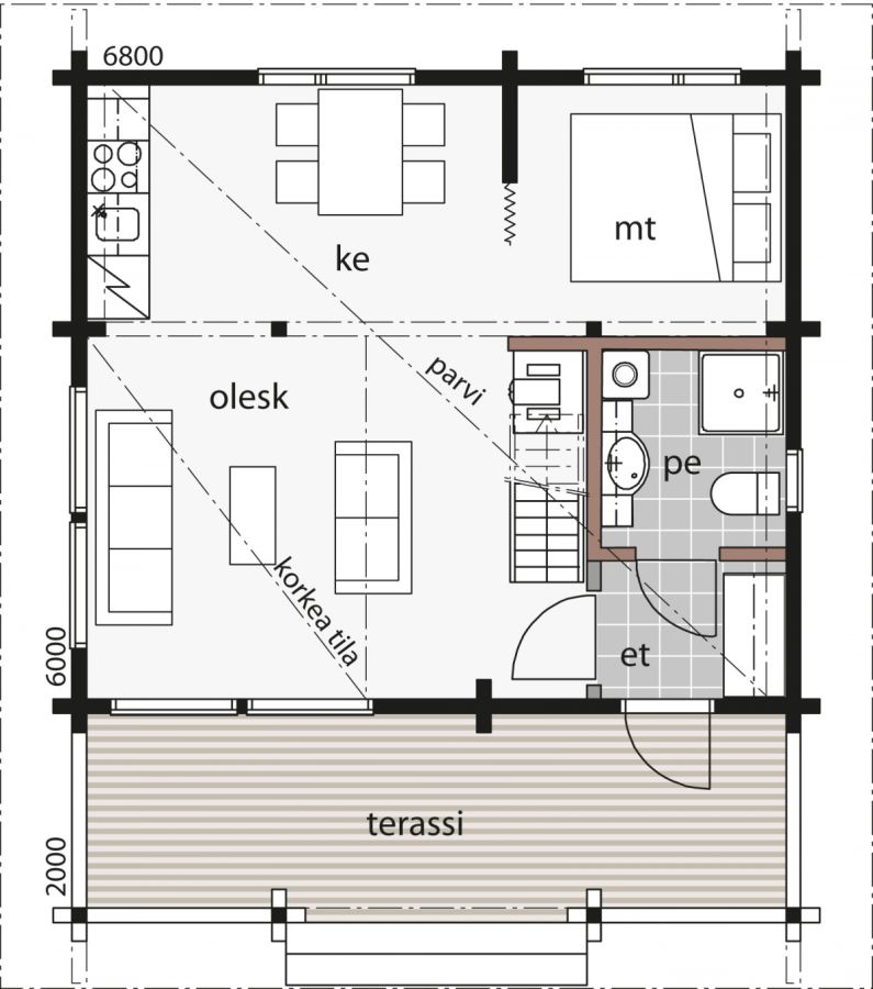 Lisäksi parvimalleihin: Yläpohjan tuuletukseen tarvittavat tuuletusrakorimat ja tuuletushatut, tarvittavat sisäpuoliset hirsipaneelit parvelle, kattopaneeli välipohjaan ristikkorakenteisissa malleissa, parvekkeen kaiteet, pilarit ja palkit, parvekkeen lattiarakenteet, parven tikas/porras, parven lattiat.