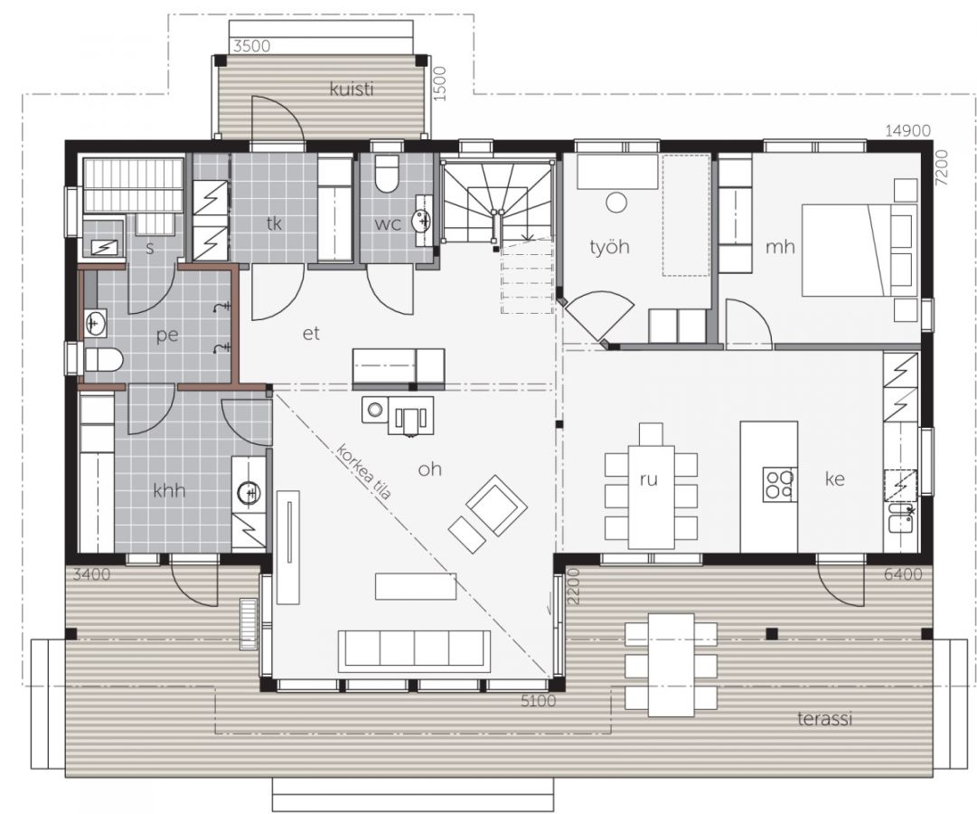 Kontio Iso-Kajastus — это гостеприимный дом, объединяющий в себе внушительный внешний вид с практичной и функциональной планировкой.