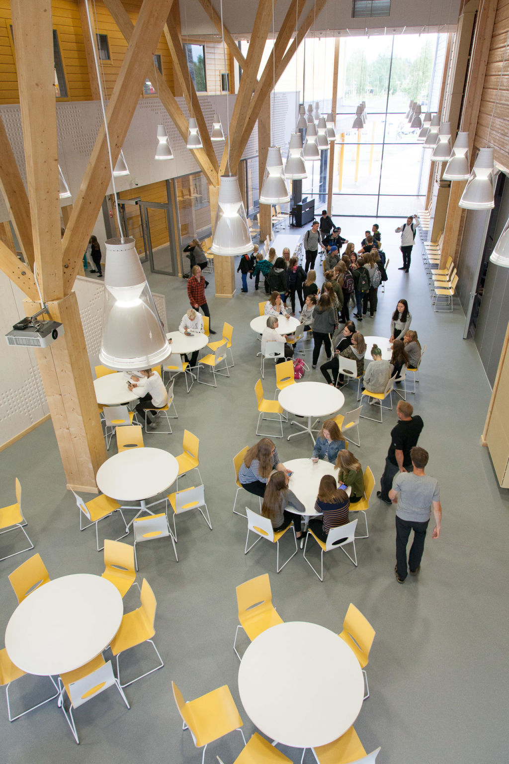 Финская система школьного образования получила большую известность во всем мире, и этот школьный комплекс из клееного бруса с его великолепной средой обучения привлек повышенное внимание международных посетителей. Если вы хотите посетить крупнейшее в мире школьное здание из клееного бруса здесь в северной Финляндии, свяжитесь с сотрудниками фабрики Kontio в Пудасъярви