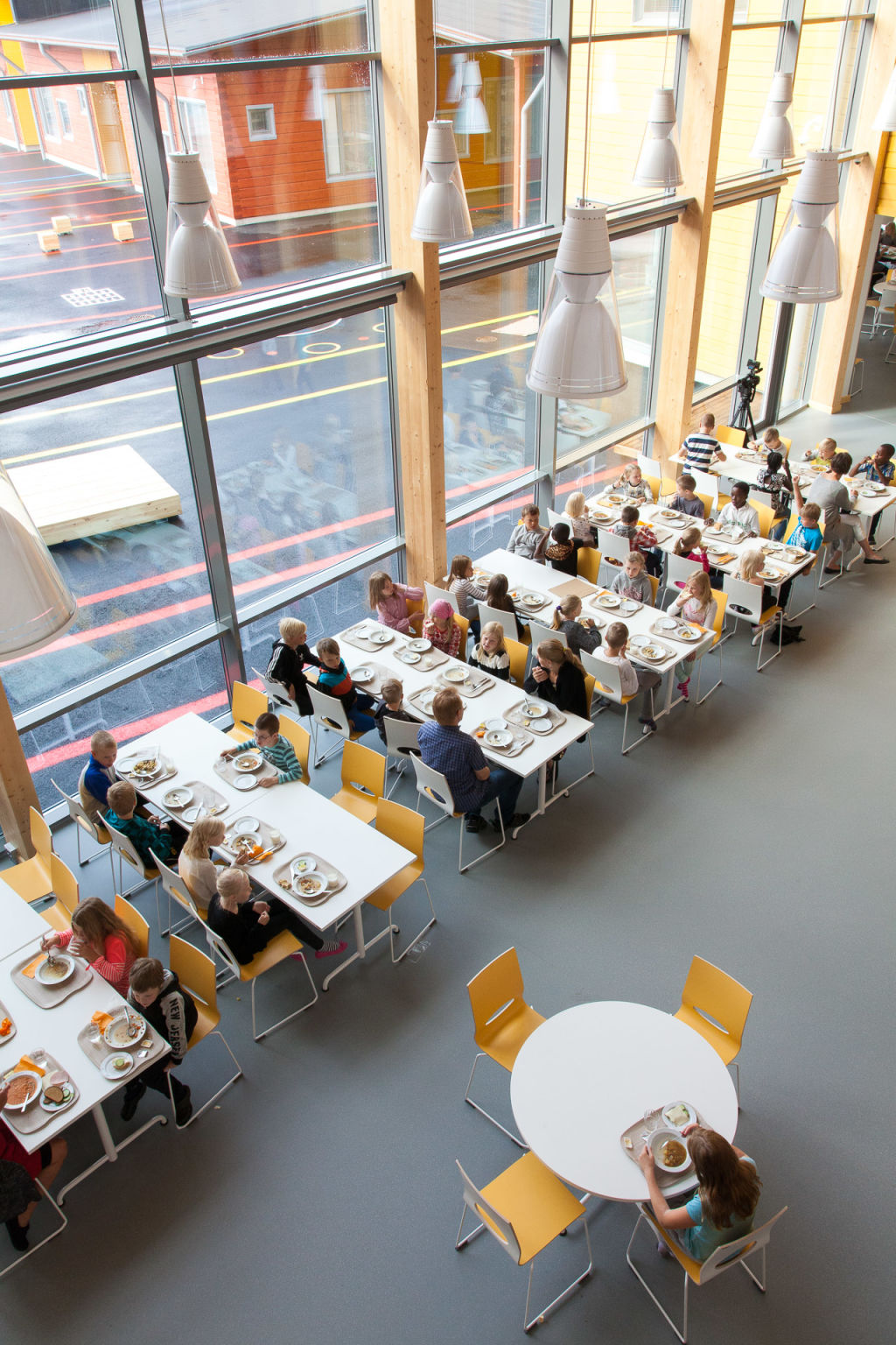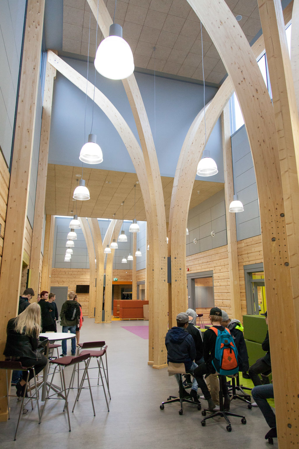 Весь школьный комплекс — это четыре здания для школьников разного возраста, соединенные между собой стеклянными переходами. Высокие стеклянные стены вестибюля школы и школьной столовой призваны максимально использовать весь свет, поступающий в помещение в светлое время недолгого северного дня зимой. В классах, в свою очередь, обыгрывается контраст поверхностей из натурального дерева и ярко окрашенных полов.