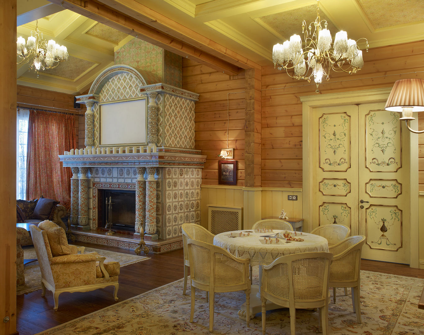 Эта монументальная, роскошная и прежде всего импозантная деревянная усадьба выглядит как настоящая сказочная крепость с обилием украшений и различных деталей, выполненных вручную местными мастерами. В ее восхитительном интерьере очаровательные цвета безупречно сочетаются с прочной древесиной полярной сосны Arctic Pine™, что создает неповторимую атмосферу в доме. На территории усадьбы также имеется роскошная конюшня. В целом Kontio Kaluga иллюстрирует высочайший профессионализм компании Kontio и нашу способность осуществлять для наших клиентов даже исключительно сложные проекты деревянных домов по принципу «под ключ».