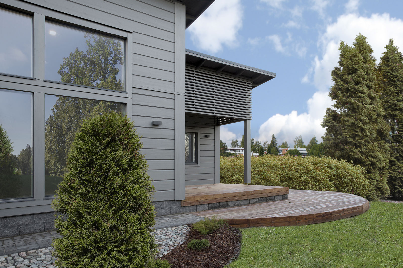 Kalevi Laajisto and Liisa Halttunen-Laajisto wanted to build a modern wood house with a timeless design. "We wanted a home with healthy indoor air to help with allergy and asthma symptoms,” Liisa says.